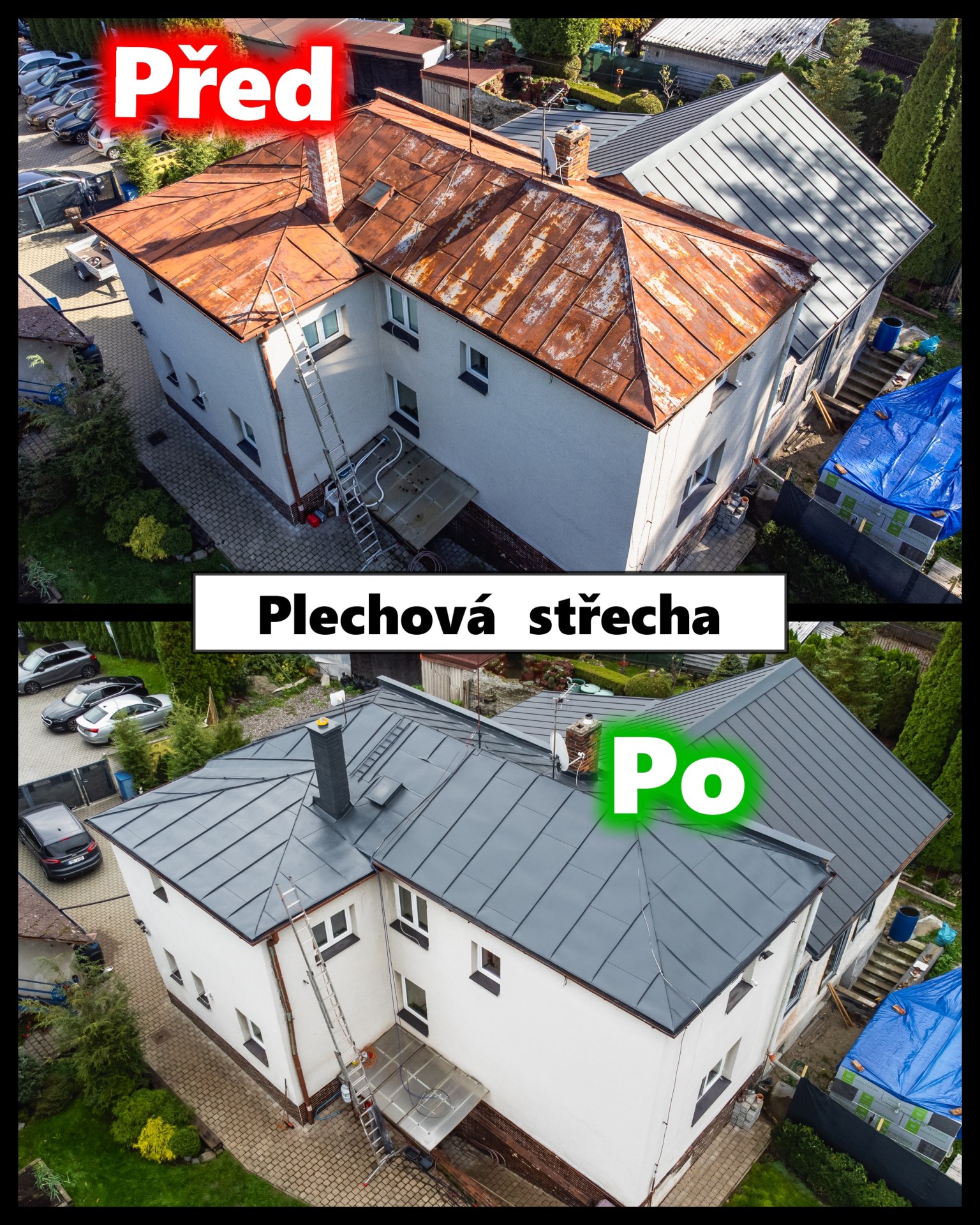 - Výsledný VZHLED jako u NOVÉ střechy.